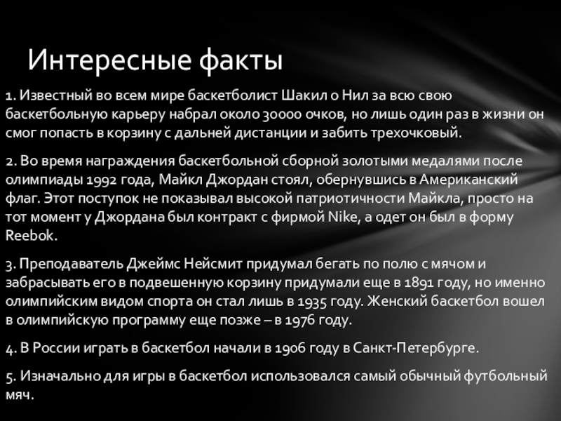 5. Изначально для игры в баскетбол использовался самый обычный футбольный мяч.