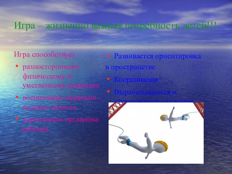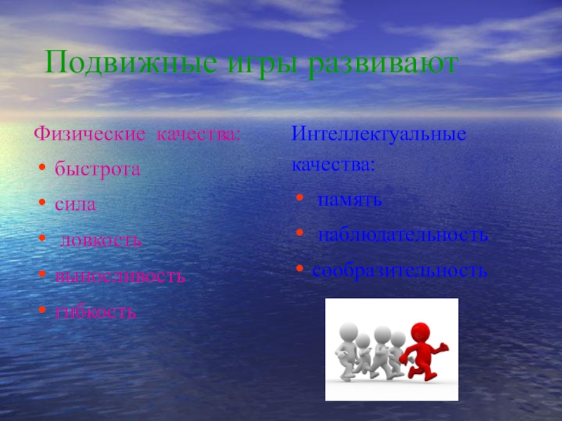 Главный признак подвижных игр - наличие двигательных действий, благодаря чему они являются отличным средством и методом физического развития.