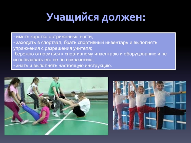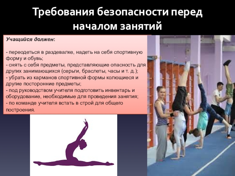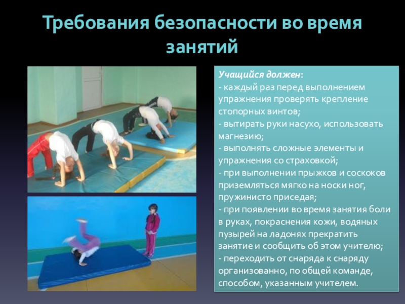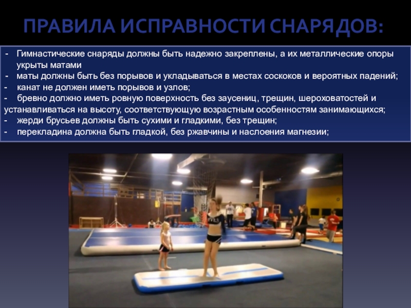 Слайд 1Правила безопасности при проведении занятий по гимнастике