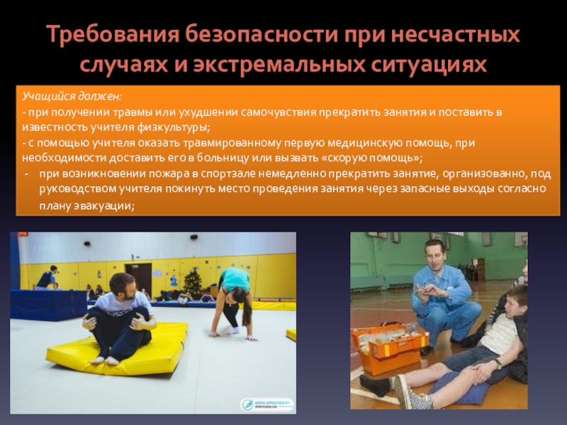 Слайд 8Требования безопасности при несчастных случаях и экстремальных ситуациях