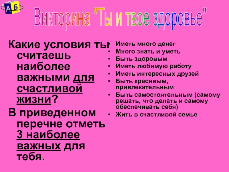 Викторина "Ты и твое здоровье"