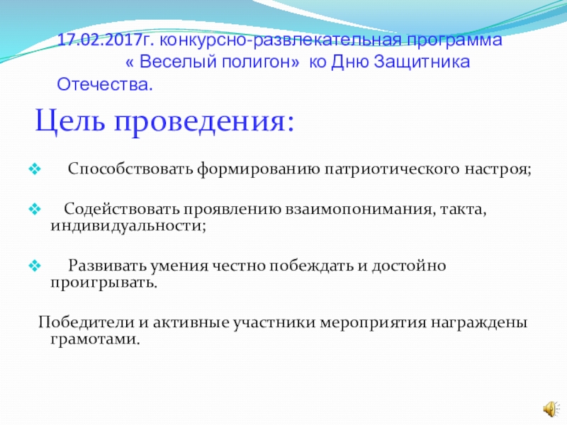 Содействовать проявлению взаимопонимания, такта, индивидуальности;