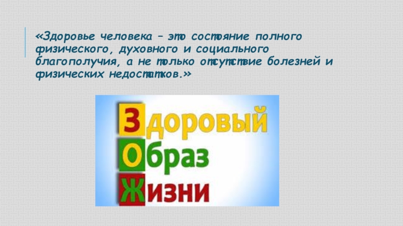 Слайд 2«Здоровье человека – это состояние полного физического, духовного и социального благополучия,