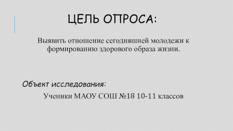 Выявить отношение сегодняшней молодежи к формированию здорового образа жизни.