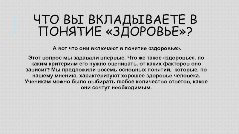 Слайд 13Что вы вкладываете в понятие «здоровье»?