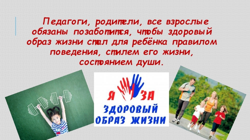 Слайд 27 Педагоги, родители, все взрослые обязаны позаботится, чтобы здоровый образ жизни стал