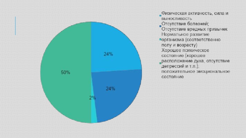 состояние», этот вариант отметили 50% респондентов. В тройку лидеров вошли также позиции «физическая выносливость» - 24% и «отсутствие болезней» -24% процентов голосов, соответственно.