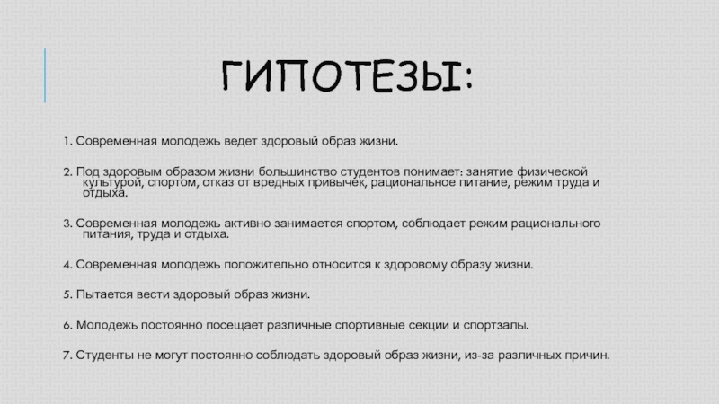 7. Студенты не могут постоянно соблюдать здоровый образ жизни, из-за различных причин.
