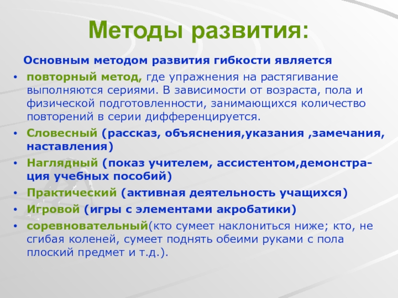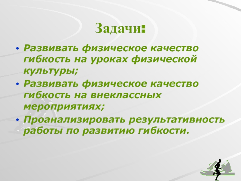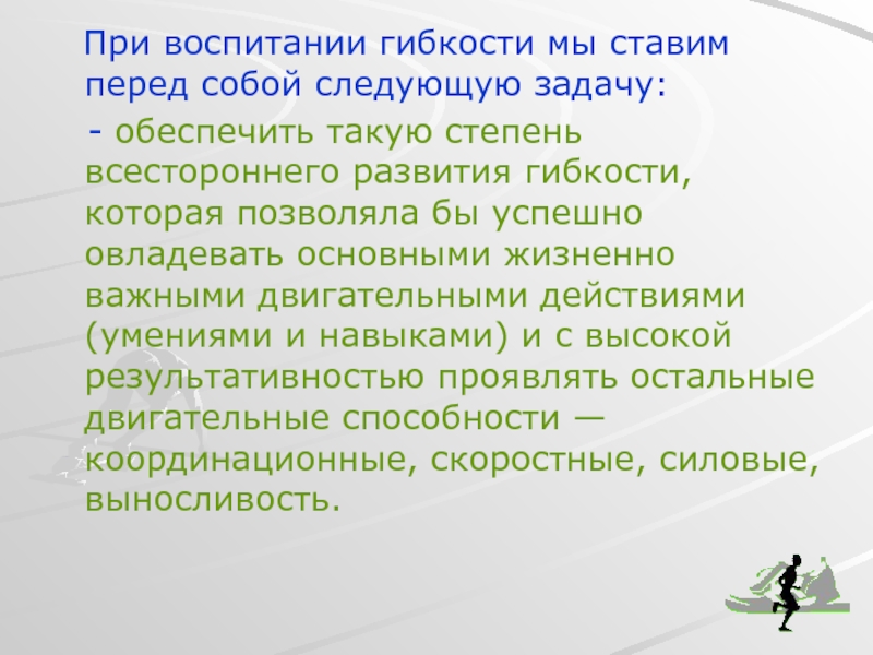 Слайд 7 При воспитании гибкости мы ставим перед собой следующую задачу: