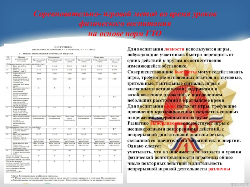Слайд 10Соревновательно- игровой метод во время уроков физического воспитания