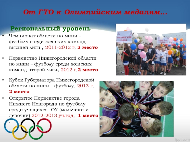 Открытое Первенстве города Нижнего Новгорода по футболу среди учащихся ОУ (мальчики и девочки) 2012-2013 уч.год, 1 место .