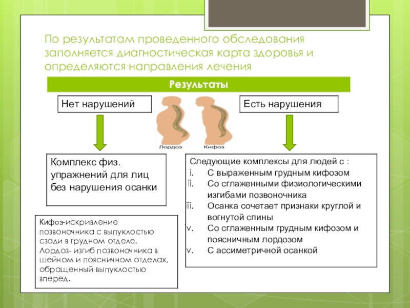 Слайд 6По результатам проведенного обследования заполняется диагностическая карта здоровья и определяются направления