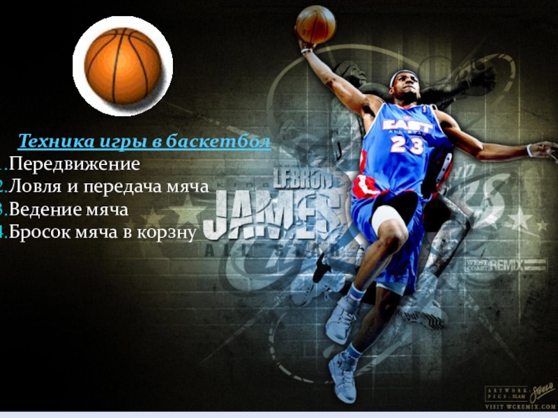 остановки, повороты. Передвижения - основа техники баскетбола. С помощью этих приемов игрок может правильно выбрать место, оторваться от опекающего его противника и выйти в нужном направлении для последующей атаки, достичь наиболее удобных, хорошо сбалансированных исходных положений для выполнения других приемов