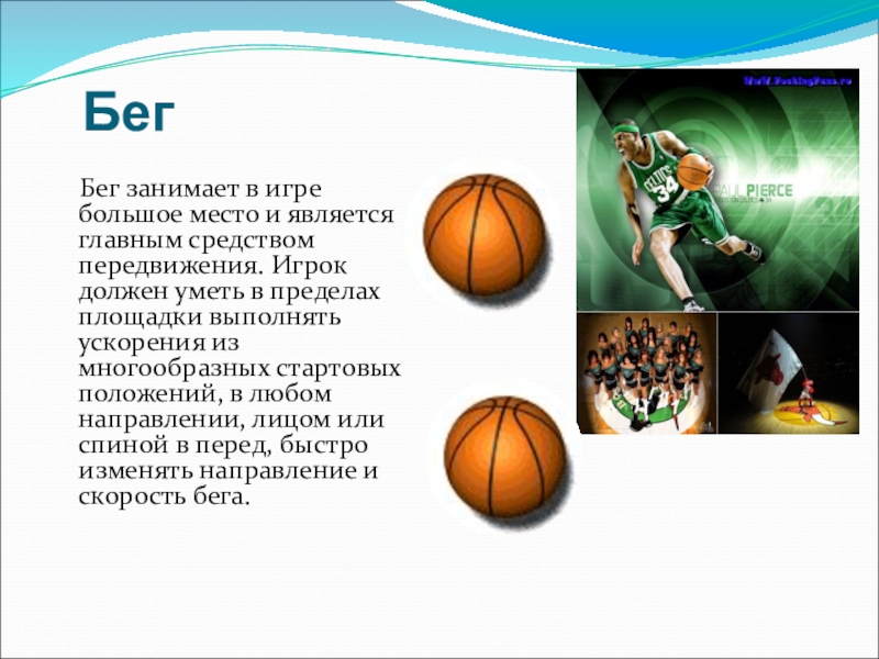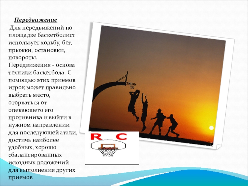 Для передвижений по площадке баскетболист использует ходьбу, бег, прыжки,