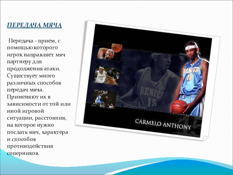 Слайд 11ПЕРЕДАЧА МЯЧА