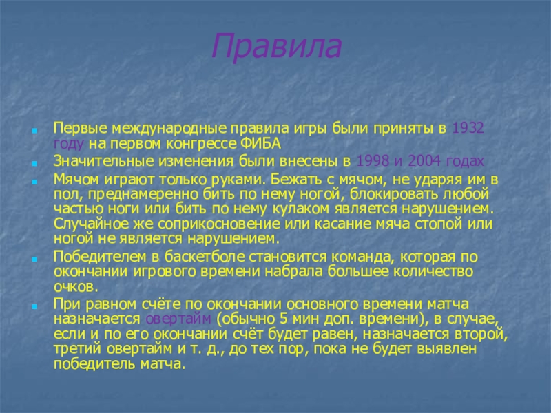 Победителем в баскетболе становится команда, которая по окончании игрового времени набрала большее количество очков.