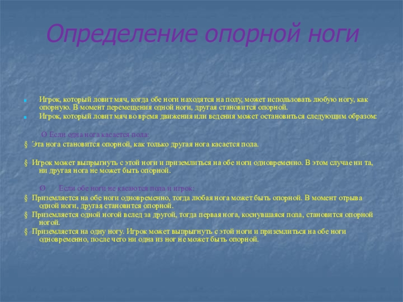 § Игрок может выпрыгнуть с этой ноги и приземлиться на обе ноги одновременно. В этом случае ни та, ни другая нога не может быть опорной.