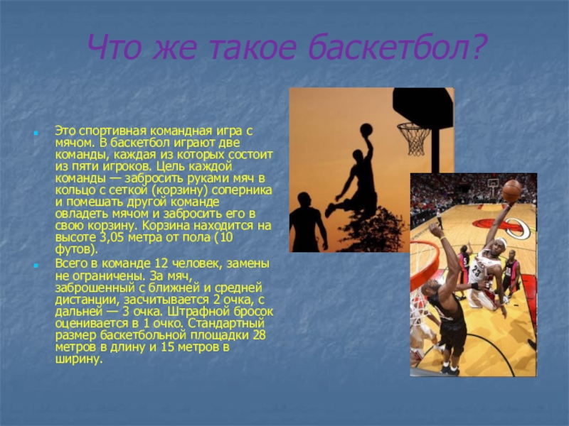 Ее смысл - забросить большее количество мячей в корзину соперников.