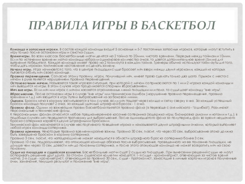 Правила времени. Некоторые правила времени крайне важны. Правило 30 сек. гласит, что через 30 сек. выбрасывание атака должна быть завершена броском в корзину соперника.