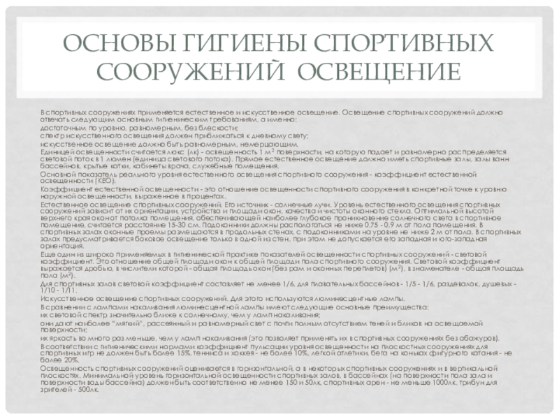 Слайд 11Основы гигиены спортивных сооружений освещение
