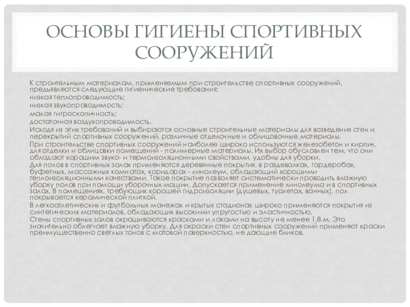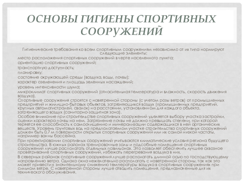 Гигиенические требования ко всем спортивным сооружениям независимо от