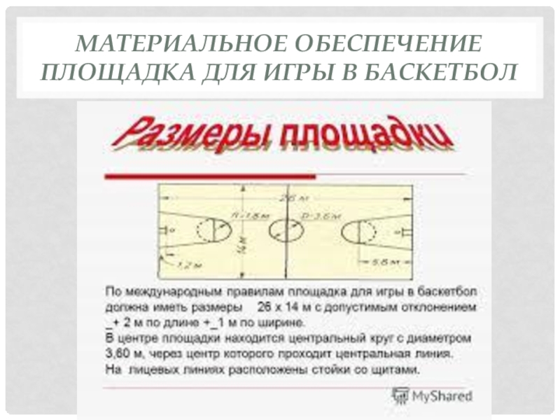 Слайд 6Материальное обеспечение Площадка для игры в баскетбол