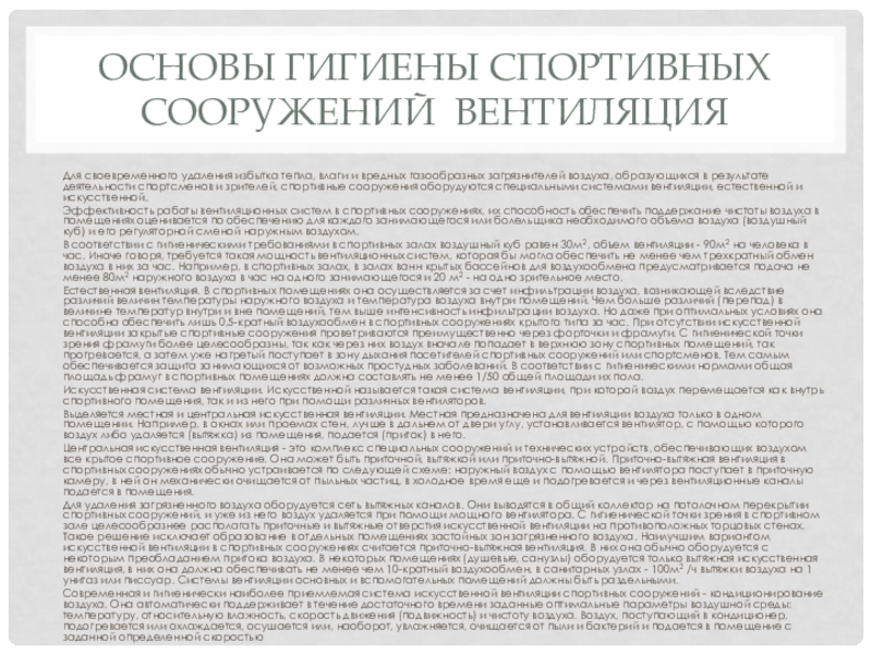 Слайд 13Основы гигиены спортивных сооружений Вентиляция