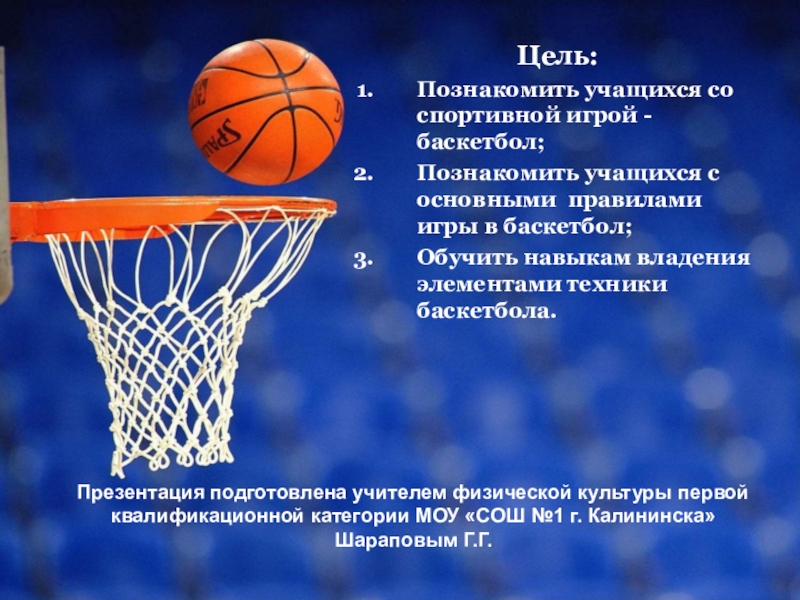 Познакомить учащихся со спортивной игрой - баскетбол;