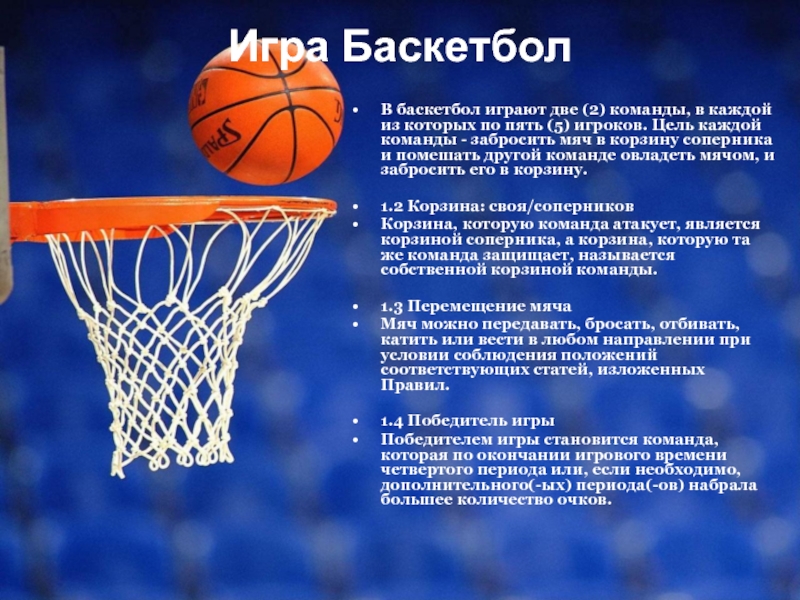 Слайд 3Кратко о баскетболе можно сказать, что это спортивная командная игра, в