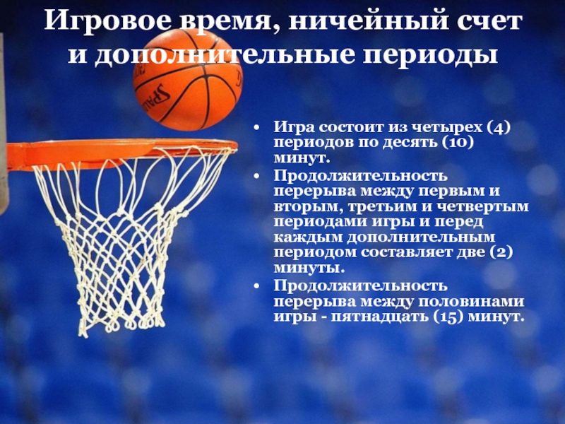 Слайд 8Игровое время, ничейный счет и дополнительные периоды