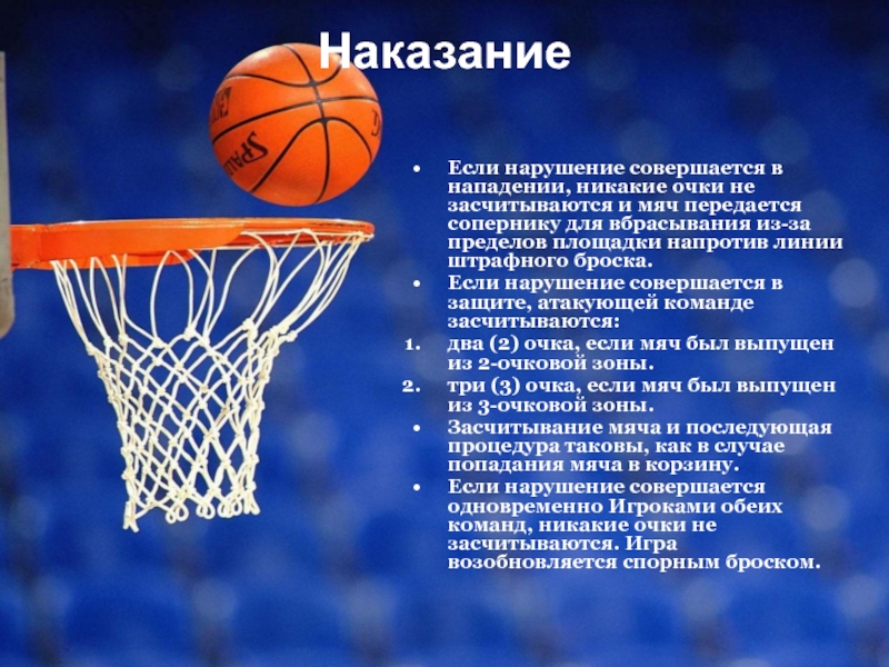 За мяч, заброшенный со штрафного броска, засчитывается одно (1) очко.