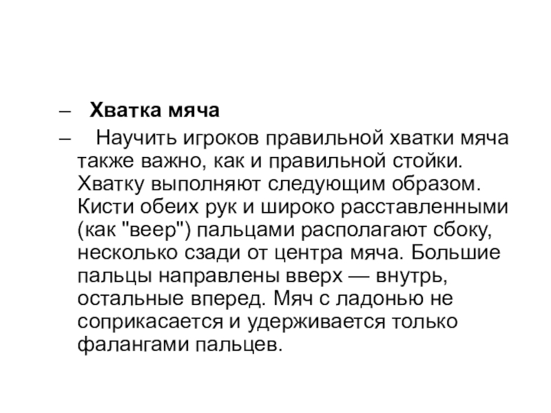 Научить игроков правильной хватки мяча также важно,
