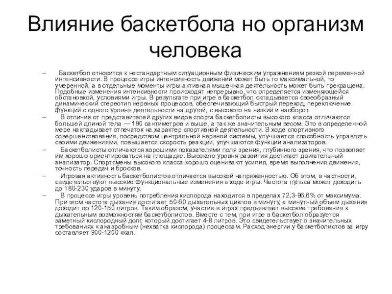Слайд 5Влияние баскетбола но организм человека