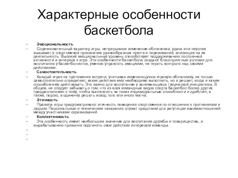 Слайд 4Характерные особенности баскетбола