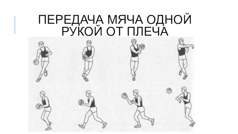 Слайд 2Передача мяча одной рукой от плеча