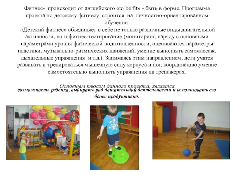 возможность ребенка, выбирать род двигательной деятельности и использовать его более продуктивно.