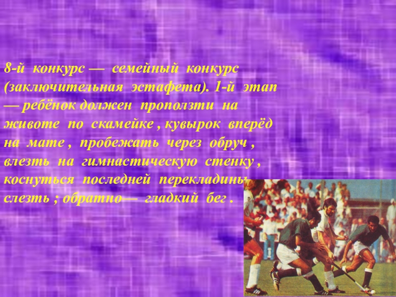 Слайд 108-й конкурс — семейный конкурс (заключительная эстафета). 1-й этап — ребёнок