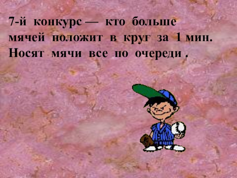 Слайд 97-й конкурс — кто больше мячей положит в круг за 1
