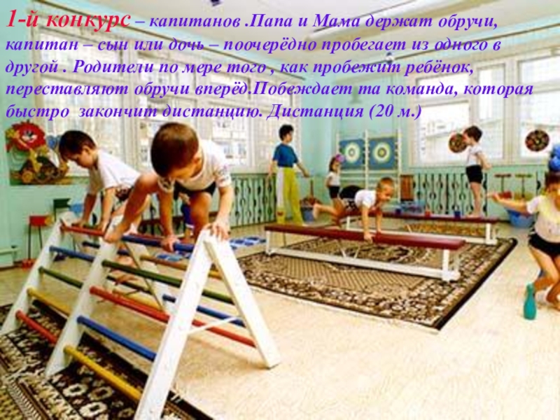 1-й конкурс – капитанов .Папа и Мама держат обручи, капитан –