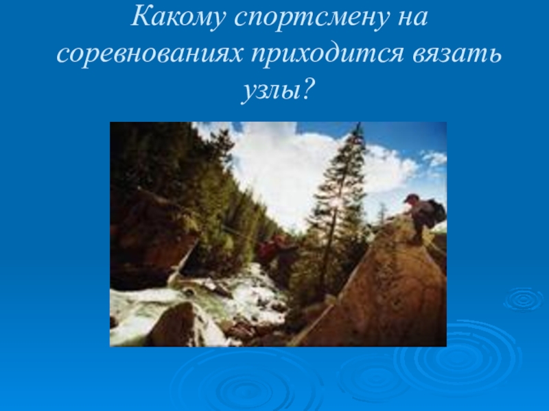 Слайд 16Какому спортсмену на соревнованиях приходится вязать узлы?