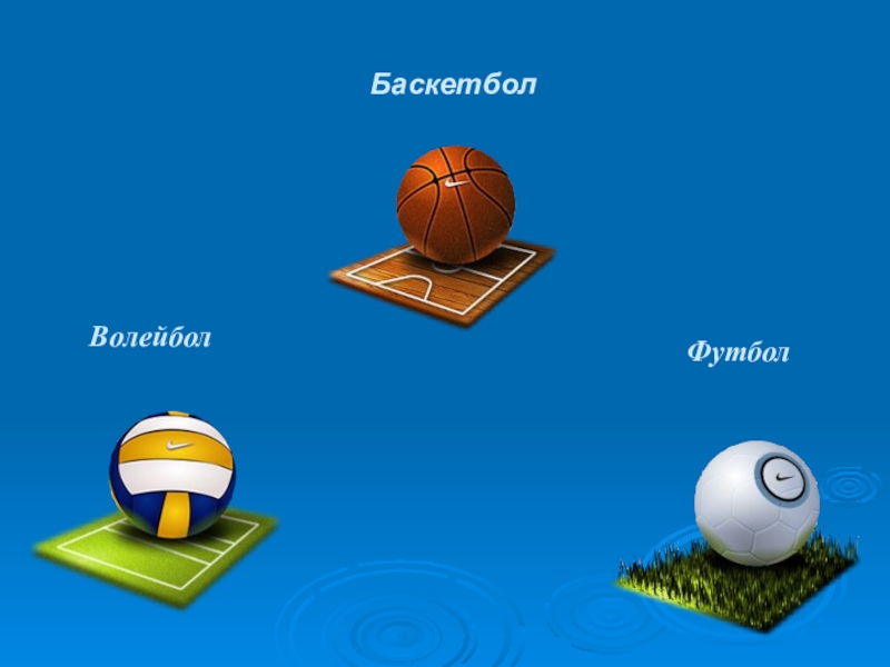 Расставьте правильно мячи по видам спортаФутбол Волейбол Баскетбол