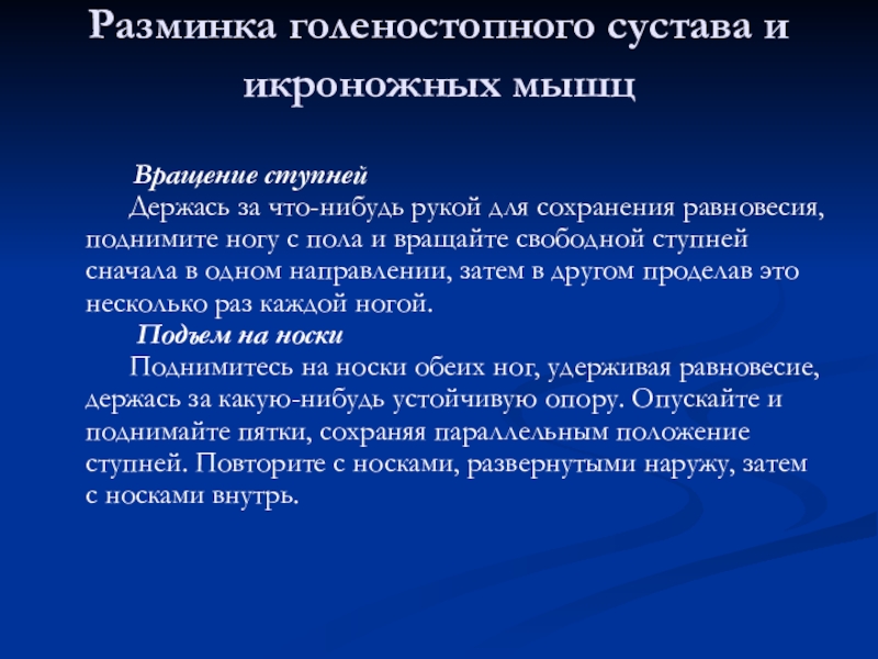 Слайд 14Разминка голеностопного сустава и икроножных мышц