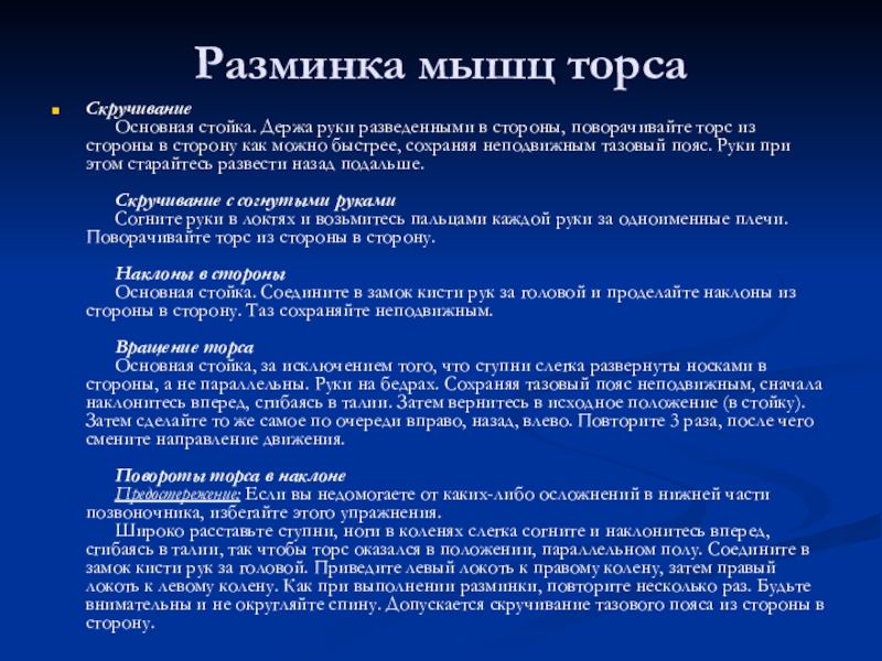 Слайд 10Разминка мышц торса