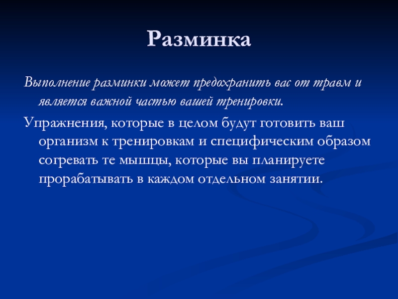 Выполнение разминки может предохранить вас от травм и является важной частью