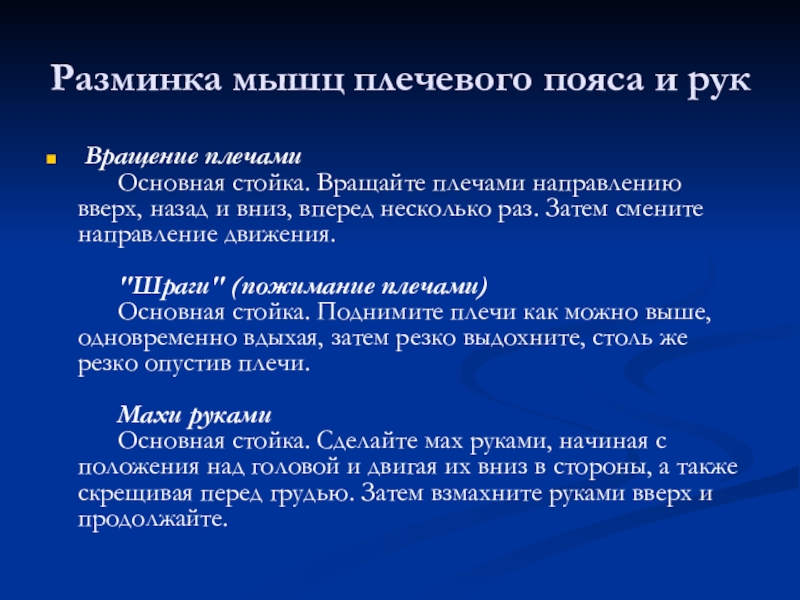 Слайд 8Разминка мышц плечевого пояса и рук