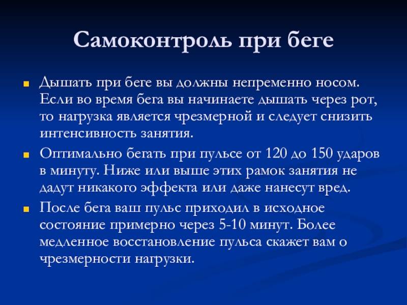 Слайд 17Самоконтроль при беге