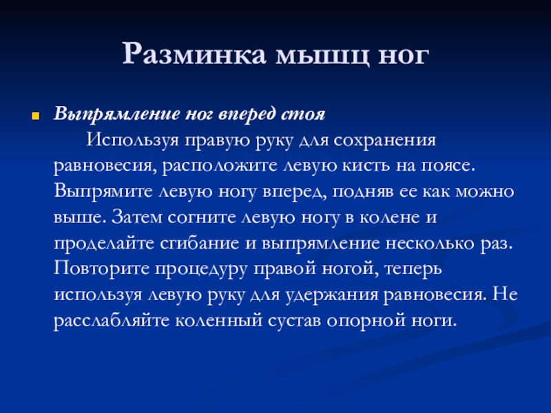 Слайд 12Разминка мышц ног