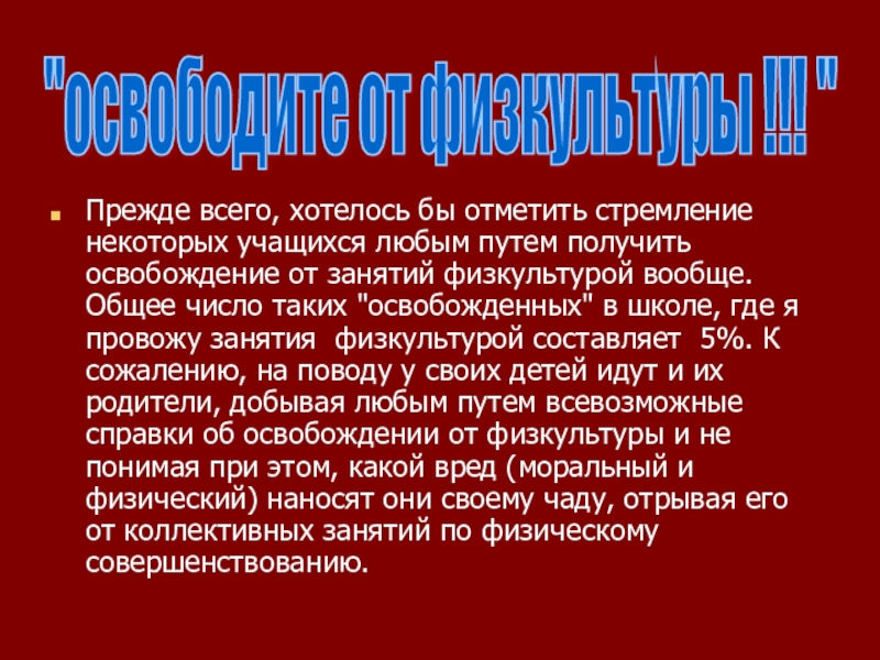 "освободите от физкультуры !!! "