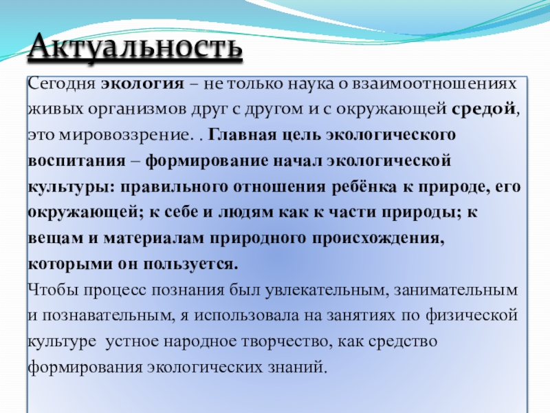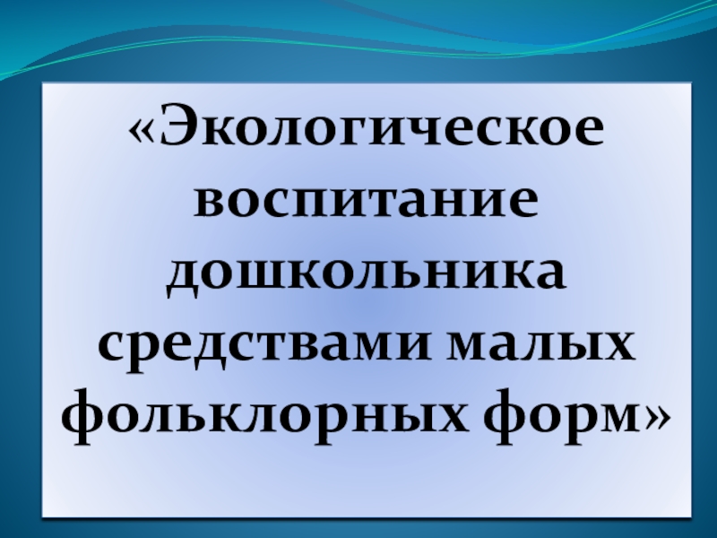Слайд 2«Экологическое воспитание дошкольника средствами малых фольклорных форм»