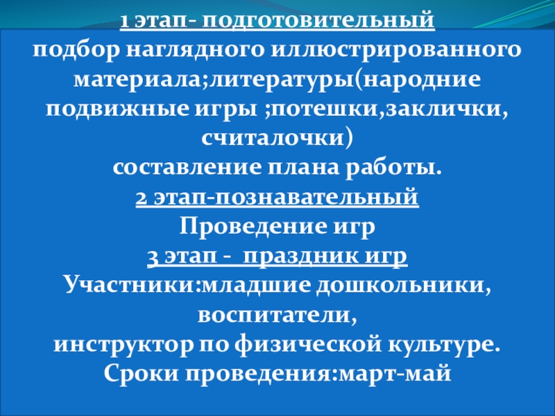 подбор наглядного иллюстрированного материала;литературы(народние подвижные игры ;потешки,заклички,считалочки)